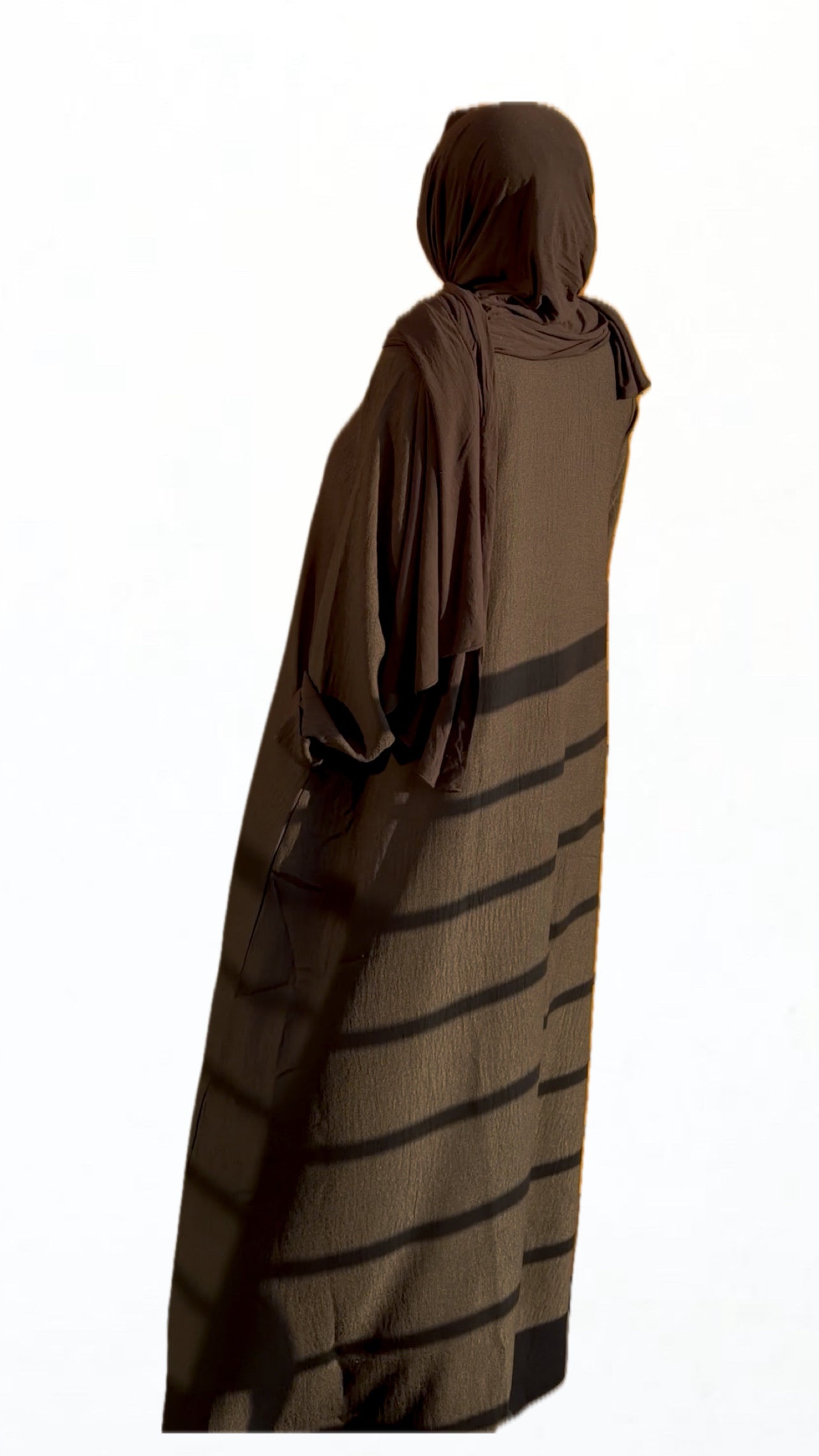 Looking to elevate your Abaya wardrobe? The Aswan Abaya can be worn for your everyday outing or dressed up for a special occasion. Designed with pockets on the each side. Complimentary hijab included.