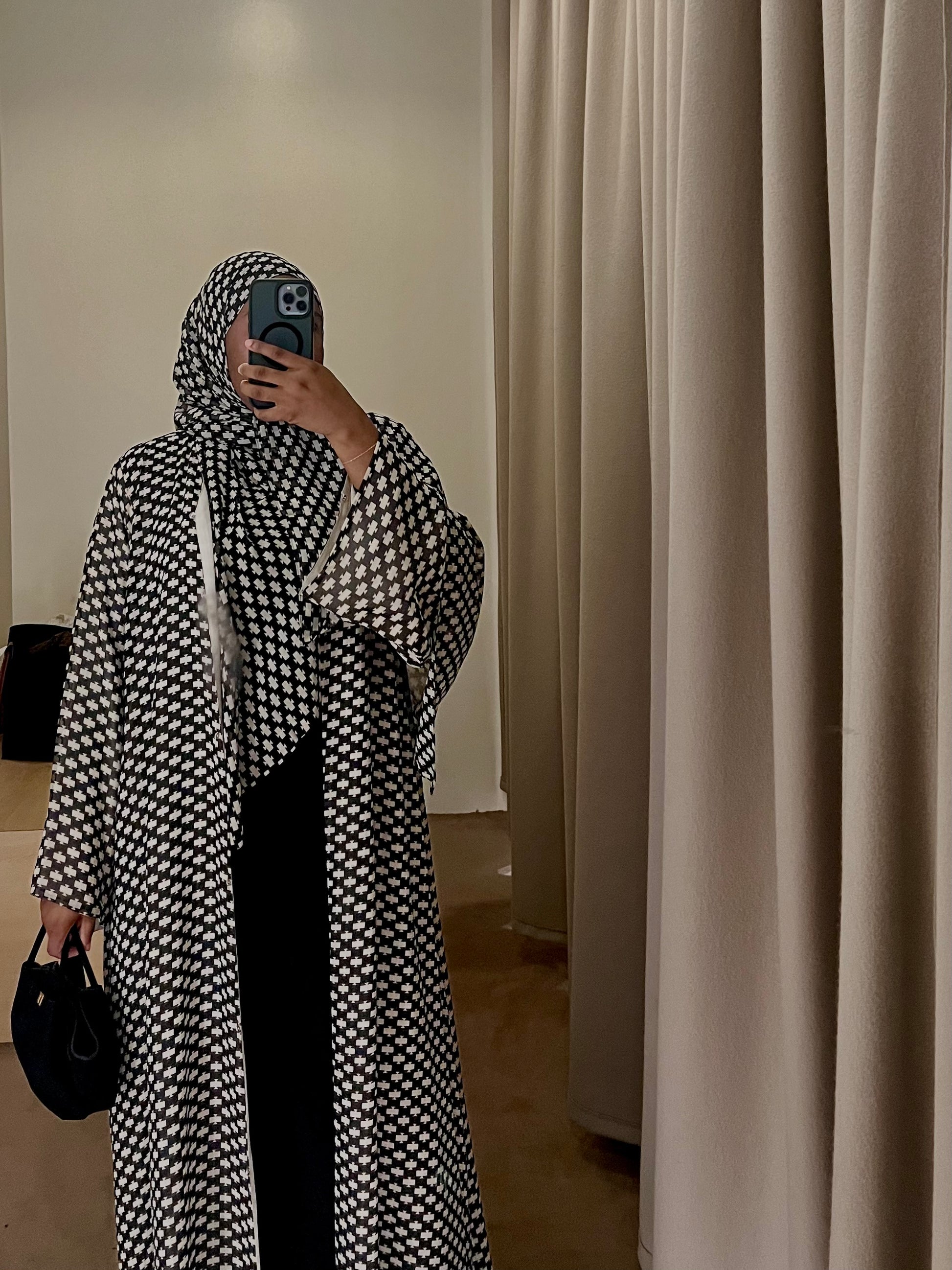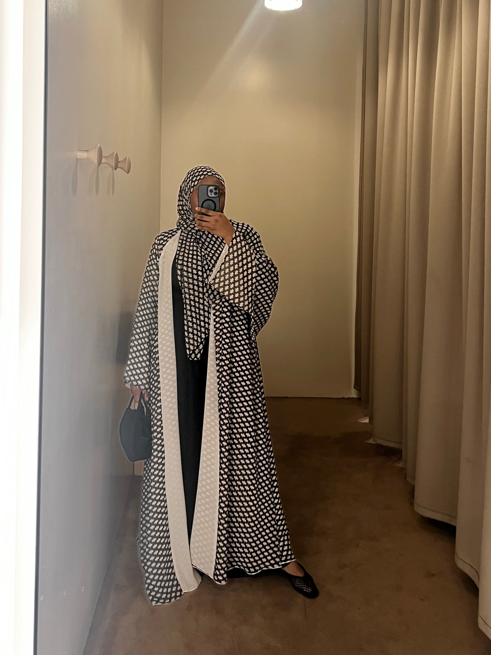 A timeless essential designed for both style and comfort. This open abaya is fully lined and tailored with thoughtful details to make your day easier. Featuring discreet pocket sleeves for added convenience and snap-on closures at the wrists to keep the sleeves in place, you’ll never have to worry about them slipping down. A line of elegant buttons runs down the front, giving you the option to wear it open or closed depending on the occasion.