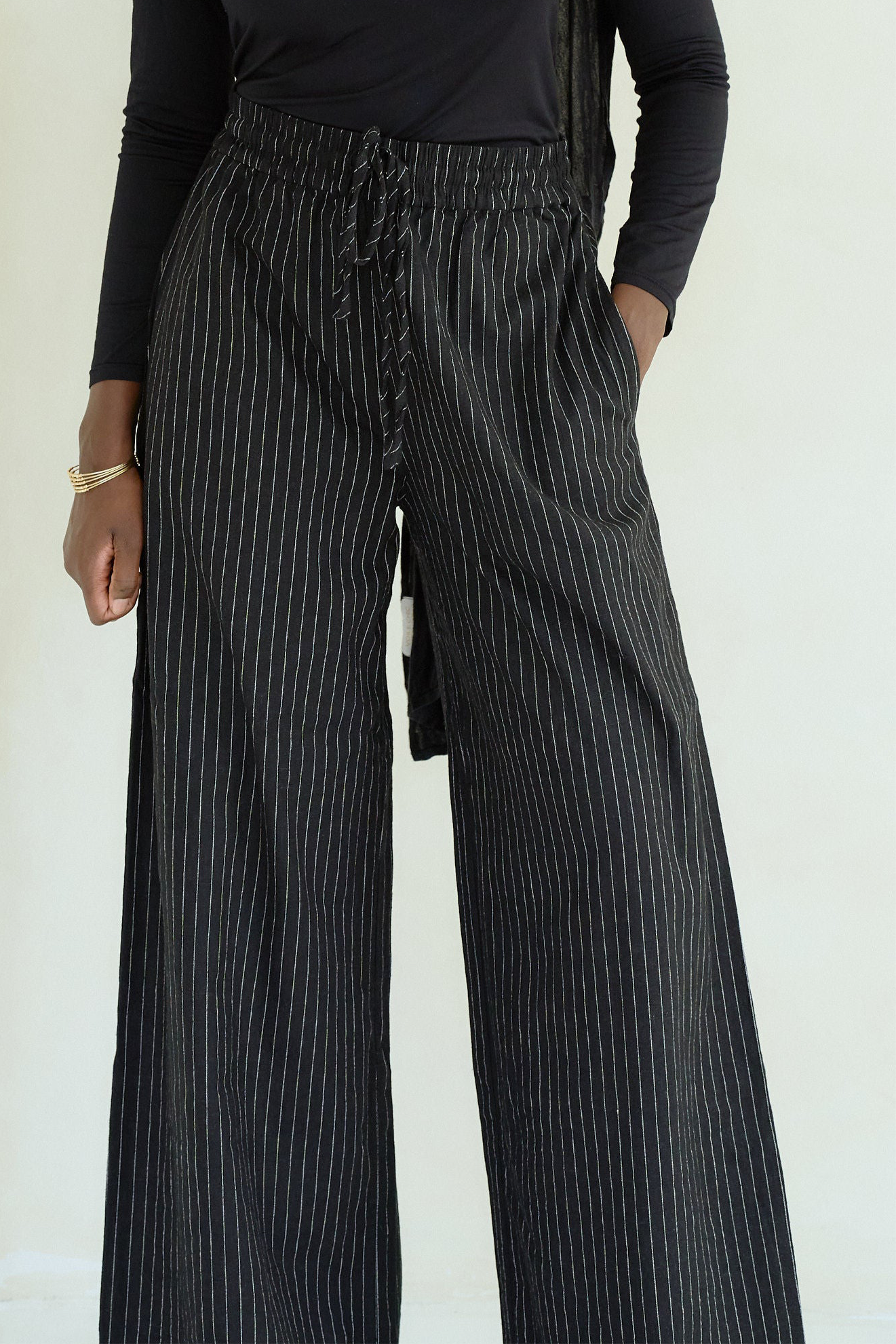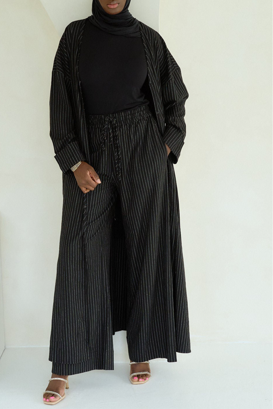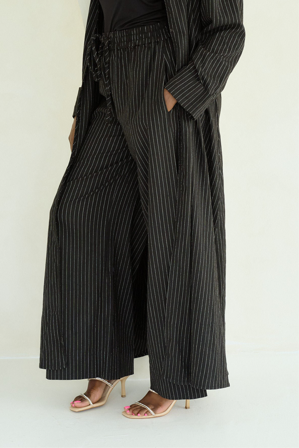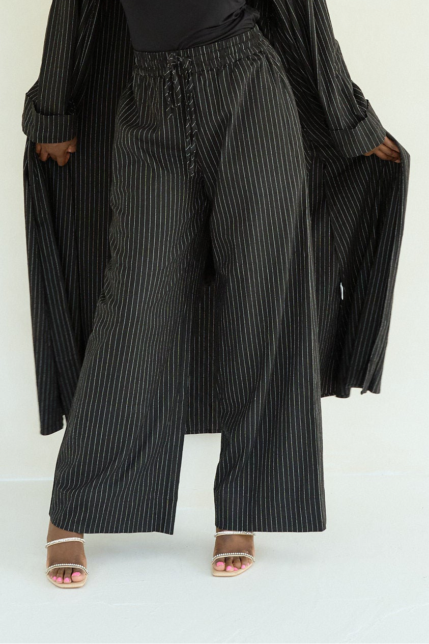 Make an effortless statement with our striped wide-leg pants, designed for comfort and modest sophistication. Crafted from a soft, breathable fabric, with an elastic waistband and adjustable drawstring, ensuring the perfect fit.